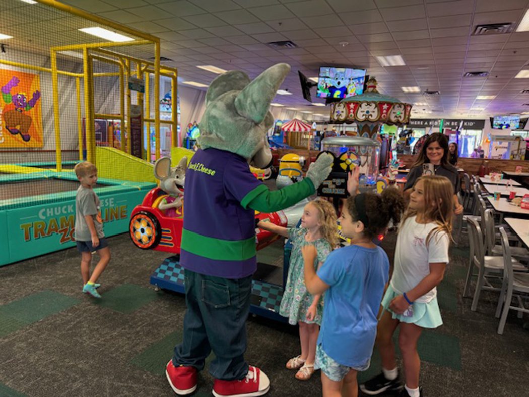 Chuck E. Cheese makes an appearance every time we are there, party or not, delighting the kids and grown-ups alike.