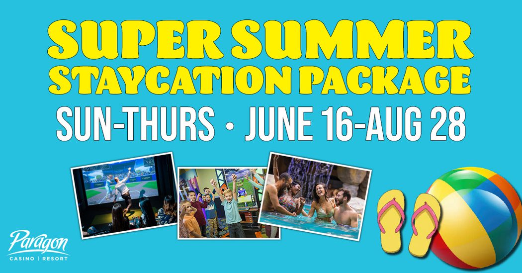 Enjoy our Super Summer Staycation package, available Sunday through Thursday through Aug. 28. Starting at $145, the package includes a hotel room, pool and movie passes, Topgolf Swing Suite time and more.