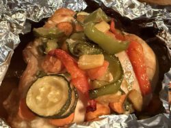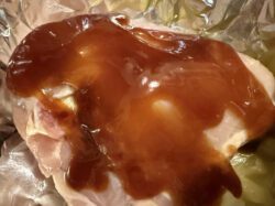 4. Put each piece of chicken in the center of the foil.