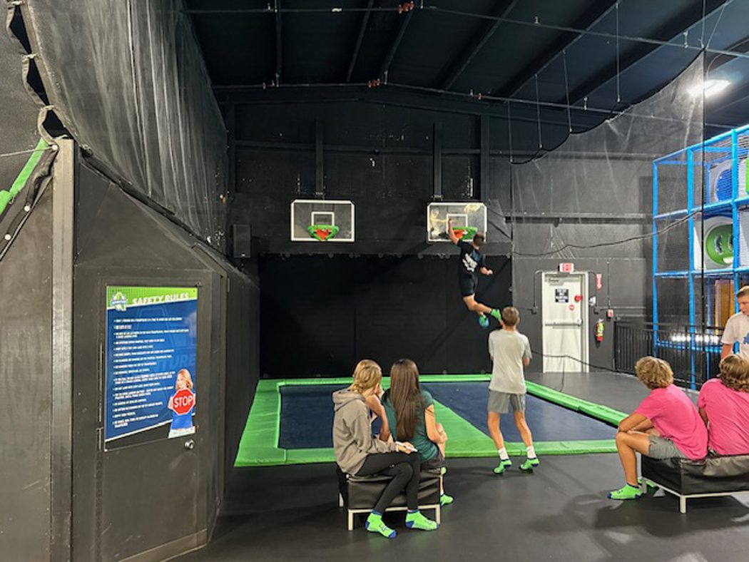 Adventure Fun Park is about more than just trampolines. Besides the 24-trampoline jump deck, there’s a dodge ball pit, two basketball goals, a giant indoor playground with slides, and an obstacle course with inflatable air mats below. Party areas on an upper deck accommodate large groups while lockers hold belongings. There are clean restrooms and concessions, including an Icee machine. There’s plenty of seating for parents, grandparents, and camp counselors! And there’s plenty of room for kids to just be kids.