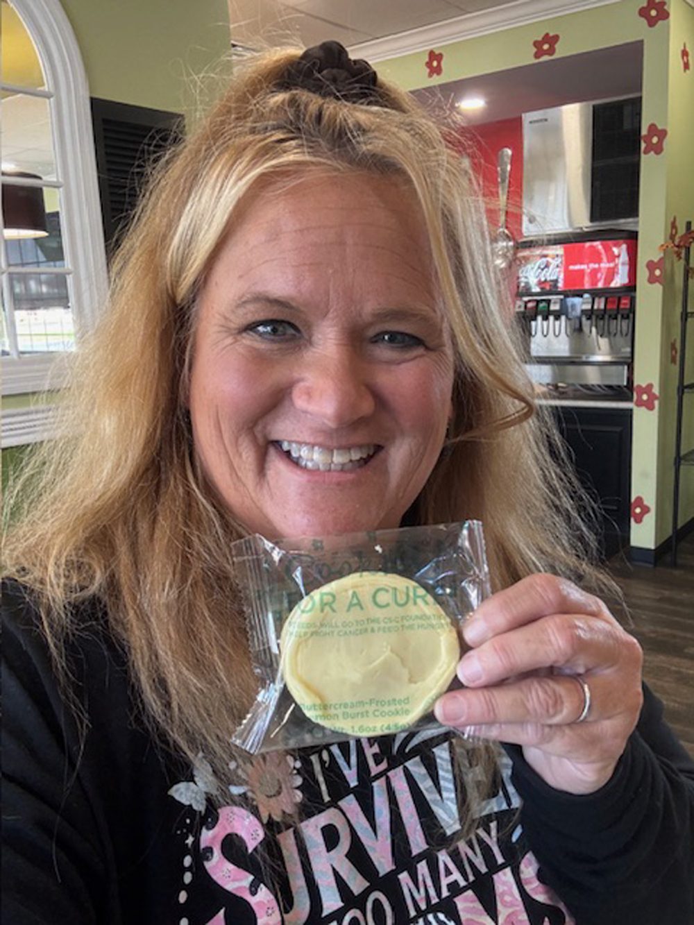 The highlight of the day was their Cookies for a Cure October fundraiser. Each lemon buttercream cookie supported the Chicken Salad Chick Foundation, which fights cancer and feeds the hungry. It was so delicious it reminded me of the now-discontinued Edwards Lemon Meringue Pie — and I didn’t even think to offer Mom a bite until I’d finished the last crumb!