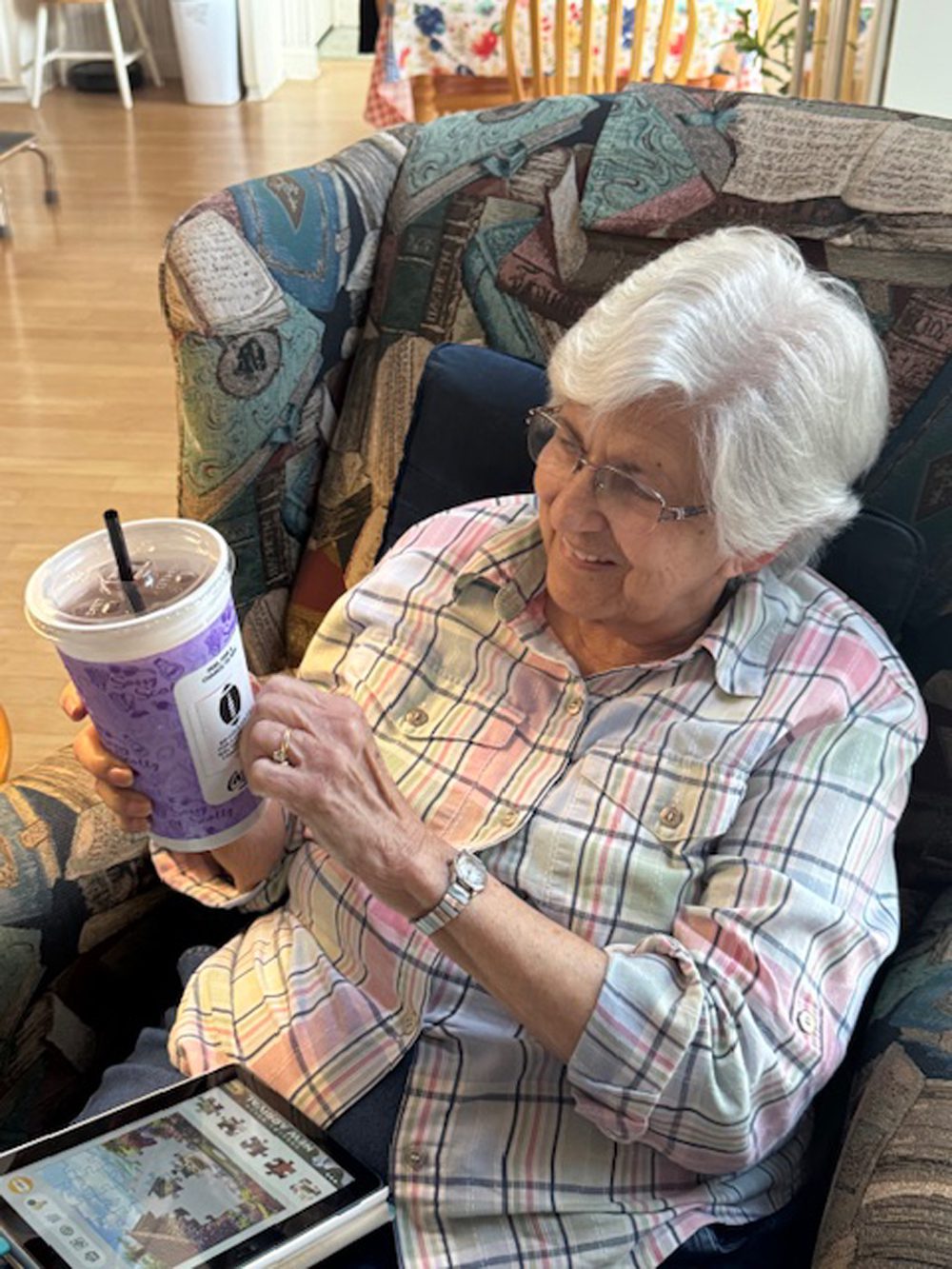We also joined in their current Peel & Win cup promotion, where customers can buy a colorful collector’s cup and reveal a Coca-Cola–inspired prize beneath the sticker. Mom had fun peeling her winning code off her pretty new purple cup.